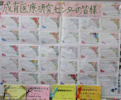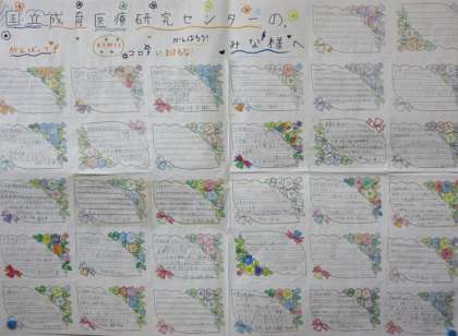 1月に5・6年生の代表委員から、成育で働いている皆さんに激励のメッセージを送りたいという提案をもとに、メッセージカードを作成しました。