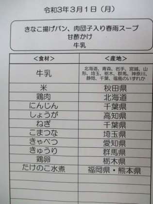 3月は1年のしめくくりの月です。6年生は砧小学校での給食もあとわずかになりました。6年生の卒業をお祝いして3月は6年生のリクエスト給食があります。今日のきなこ揚げパンは6年1組で1位でした。写真は肉団子を作っているところです。一人に3個いくように、数えながら約1500個の肉団子を作りました。肉団子入り春雨スープも人気のある献立です。
