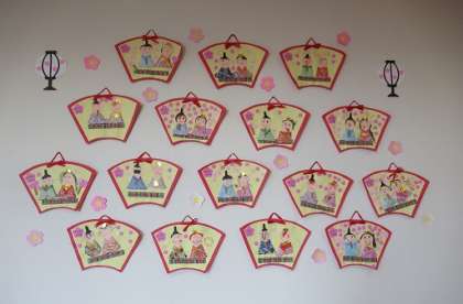 今日は、桃の節句ひなまつりでした。はな組さんは、両面折り紙で作った雛飾りを持ち帰りました。お家でも飾って愛でてください。