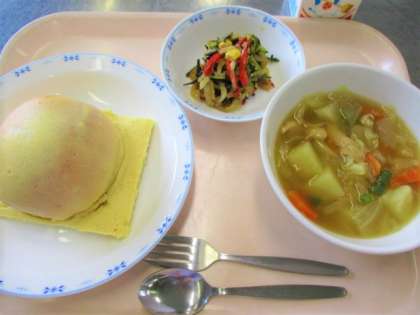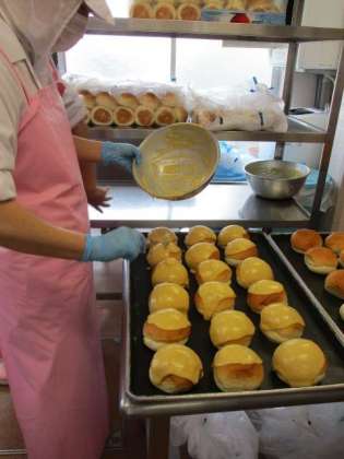 ビスキュイパンは6年生のリクエスト給食です。ビスキュイパンは6年生からだけでなく、全校的にとても人気があります。ビスキュイパンのレシピを3月の給食だよりに載せましたので、ぜひおうちで作ってみてください。写真はパンの上にビスキュイパンの生地をのせているところです。この後にオーブンで焼きます。