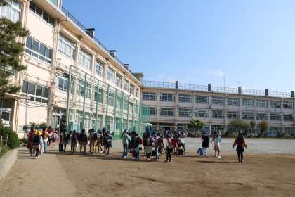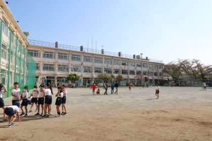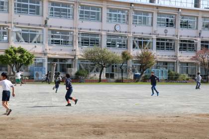 6年生が遊んでいたボールが3年生の方に転がってきました。3年生の子が6年生に投げて返すと6年生から「ありがとう〜」という声がとんできます。そんなやりとりが、ごく自然にできる砧小学校の子どもたちです。