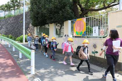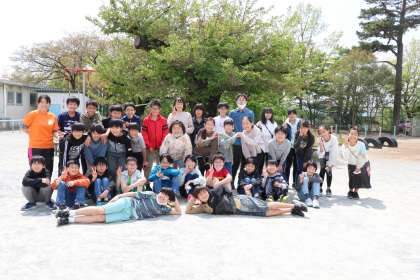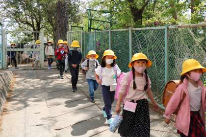 下校を見送っていると、6年生が出てきて・・・学級写真を撮っています。先生が、6年というと「2組!!」と。