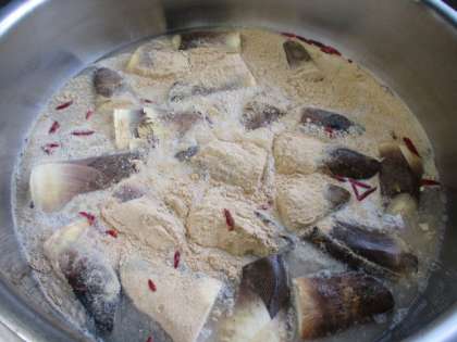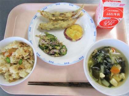どのクラスもよく食べていました。ゆでたてのたけのこはとてもいい香りがしていました。写真は給食室の釜でたけのこをゆでているところです。