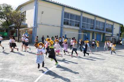 月曜日の朝は1・3・5年生のランランランです。学年毎走るコースを変えて走ります。