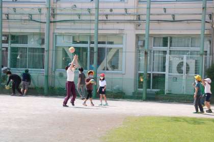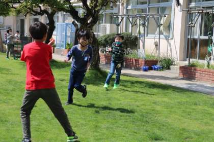 半そででちょうどいいくらいの暖かい一日でした。校庭では多くの子が外遊びを楽しんでいます。