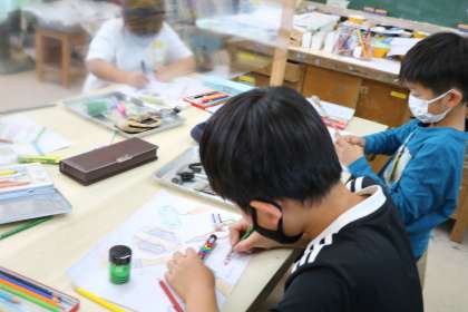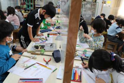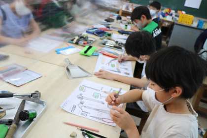 図工室にある様々な道具を知り、スケッチをし「図工室図鑑」を作っています。