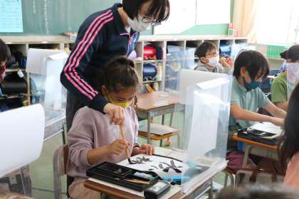 書写の学習の様子です。静かな雰囲気の中真剣に今日の課題に向き合っています。