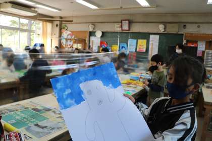 自分の作品についてたくさんお話を聞かせてくれます。みんな楽しそうです。