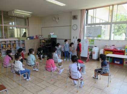 明日、明後日の誕生会に向けて、年長組さんが会場を準備したり司会の練習をしたりしていました。名札の色が変わって年少組さんを迎えたら、何だかとってもお兄さんお姉さん!自分たちで進めていこうとする姿に頼もしさを感じました。