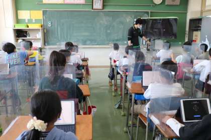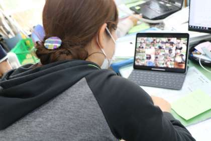 今後、さらに感染が拡大して分散登校や学級閉鎖になっても、自宅からオンラインで参加できるようにするための練習でもあります。