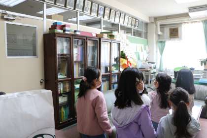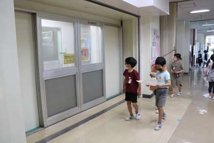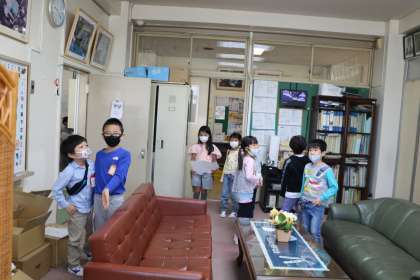 今日は2年生が、お兄さん、お姉さんとなり、1年生を学校探検(学校案内)に連れて歩きました。1年生をリードしながら、給食室、校長室、職員室、理科室、主事室など、それぞれの場所で案内をしました。