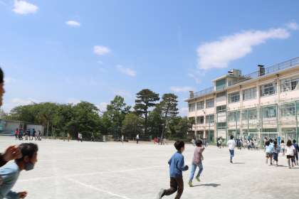 写真は、朝の6年生の様子と、中休みの5年生の様子です。