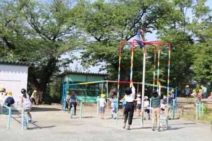 朝から元気な砧っこ。朝の支度を終えた子から外遊びを楽しんでいます。