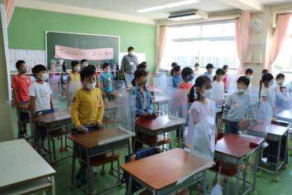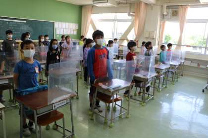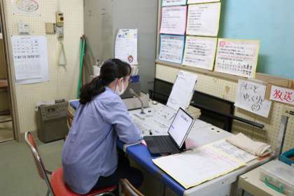 金曜日の朝は全校集会・朝会があります。今週は音楽朝会の予定でしたが、全校集まることはしないで放送を聞きながら各教室で全員参加しました。