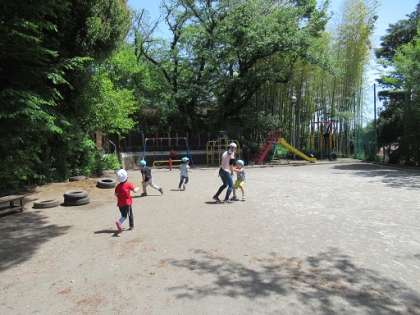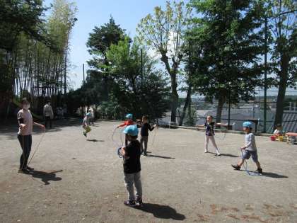 園庭の広い場所では、鬼遊びや縄跳びを楽しみました。