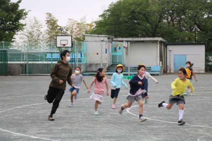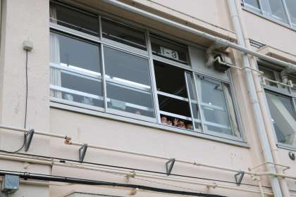 2年生ががんばっている様子を見ながら、1年生の教室から応援している子もいます。