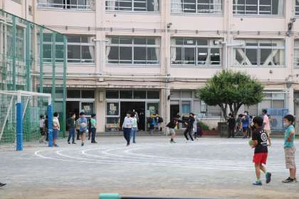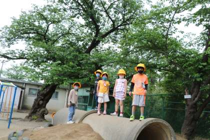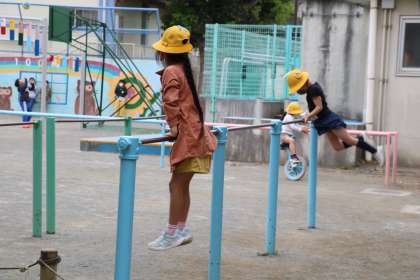 金曜日の朝です。朝の支度を終えて遊びに出てくる子どもたちです。