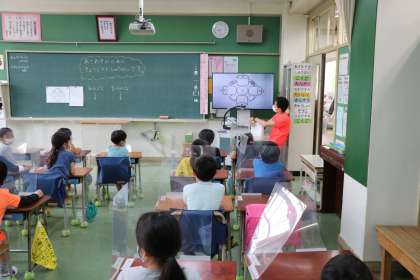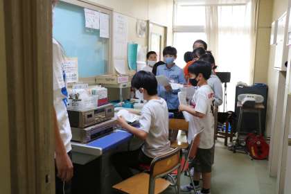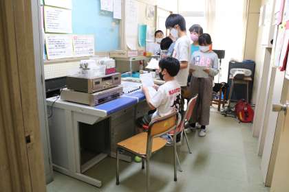 明日5月8日は開校記念日です。集会委員会が、放送でも楽しめる企画を考え、集会を実施しました。伝統ある砧小学校のことがよりわかるクイズです。教室では真剣に放送を聞いています。