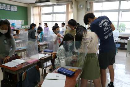 5年生の算数の様子です。砧小学校では、5・6年生で学級数プラス1クラスに分けて少人数算数を実施しています。先生と一緒に考えたり、友達のノートを参考に考えたり、それぞれのクラスのペースで学習を進めています。