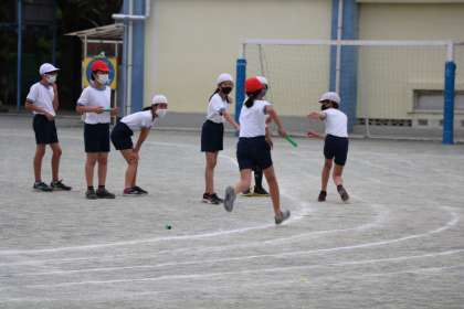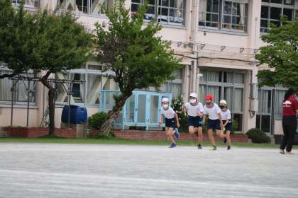 外ではリレーの学習をしています。