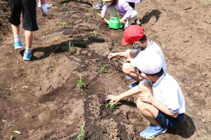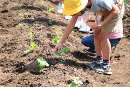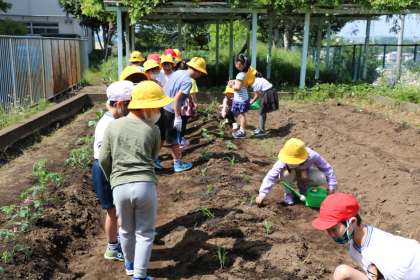 都会の学校で、これだけ広い畑のある学校は珍しいです。砧小学校では夏野菜に始まり、大根など冬の野菜にも挑戦します。