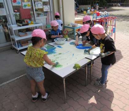 暑い一日でしたが心地よい風も吹いて、戸外で伸び伸びと遊ぶ姿が見られました。