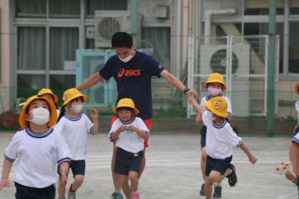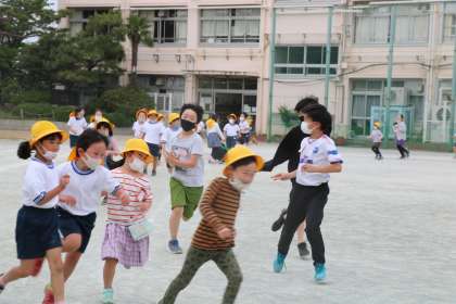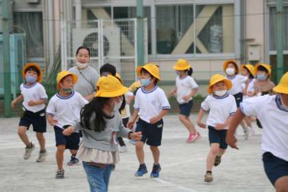 今日の中休みのランランランは1年生です。あれ?大きな1年生?と思ったら、伴走しながら励ましてくれている6年生でした。