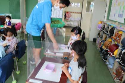 この後全員分のグリーンピースを大きなボールに入れて給食室に持っていきました。