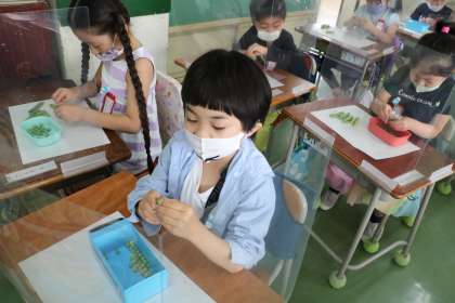 「ぼく、グリーンピース苦手だけどせっかくむいたから食べてみるね。」という子もいました。嬉しいです。