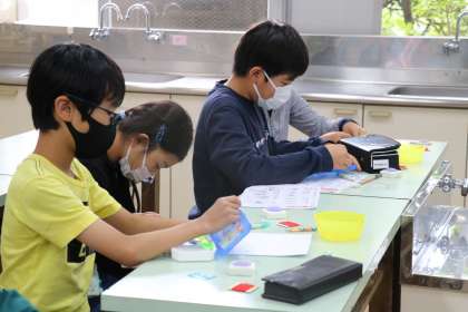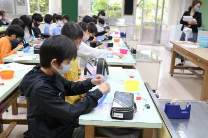 5年生家庭科授業の様子です。初めての裁縫セットに興味津々の5年生です。針に糸を通すことにもひと苦労ですが、これから少しづつ学習を進めていきます。