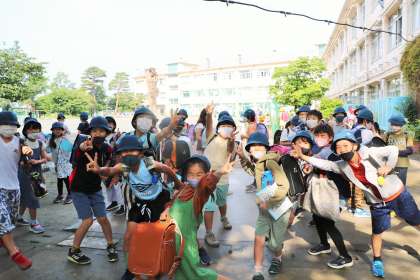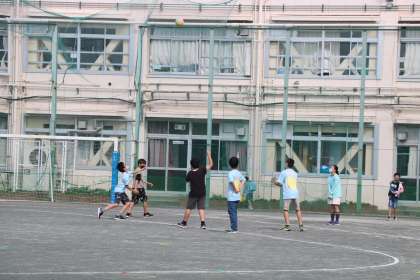 6年生は完成したばかりの、学年おそろいのTシャツを着て遊んでいます。