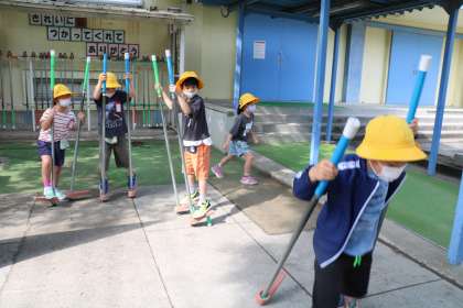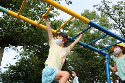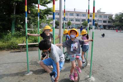 竹馬、一輪車、思い思いの遊びで朝遊びを楽しんでいます