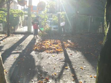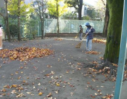 子どもたちは寒い中、しっかりと落ち葉はきをしてくれていました。