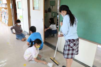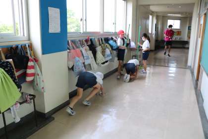 砧小学校では毎週金曜日、自問清掃を行っていきます。自問清掃では、掃除を通して、自分の心を磨いていきます。1年生は初めて聞く言葉ですが、どんな心を磨くのかというと