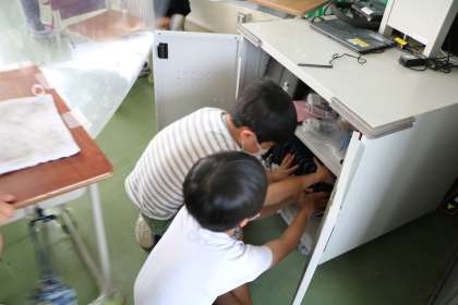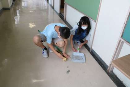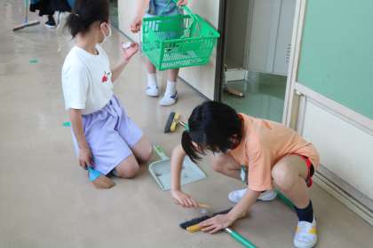 金曜日の自問清掃の時間は、学校中が静かになり、みんなが心を落ち着けて掃除をします。一人ひとりが自分で考え、心と体を動かして掃除をしています。