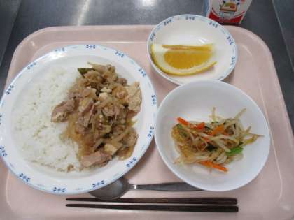 今日のくだものは「美生柑」です。産地によって「宇和ゴールド」や「ジューシーフルーツ」、「河内晩柑」など呼び方が変わります。その見た目から「和製グレープフルーツ」ともよばれています。果汁が多くとても甘いくだものです。こどもたちが食べやすいように、給食室で皮と実の間に包丁で切れ込みを入れてあります。