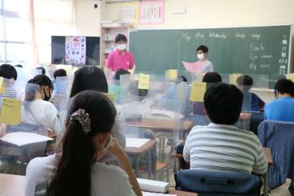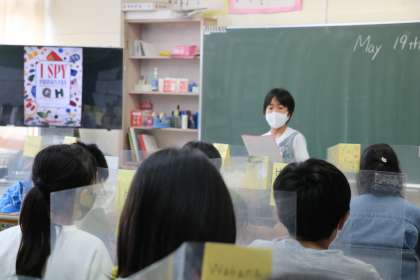 写真は6年生外国語の学習の様子です。いよいよ今日は、自己紹介発表です。今まで準備してきたものをみんなに聞いてもらい、発表した人が次の発表者を指名します。一人ひとりに拍手が送られる温かい雰囲気の発表タイムです。