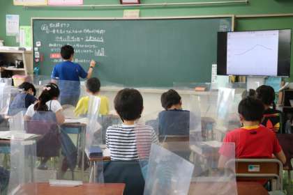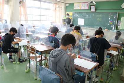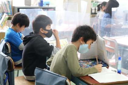 砧小学校は3年生以上が算数の時間、少人数学習をしています。自分のペースにあったクラスを選び真剣に学んでいます。