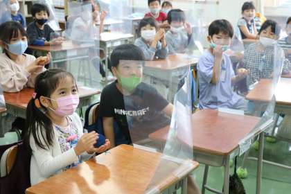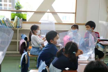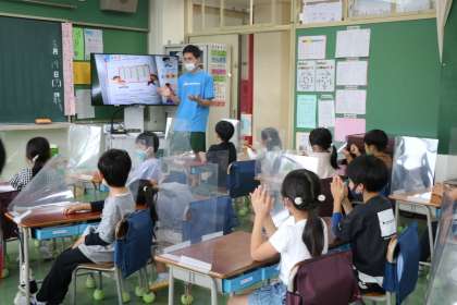 1年生音楽の様子です。カスタネットを使い、曲に合わせてリズムを取ったり、リズムに合わせてカスタネットを鳴らしながらお返事したり、楽しそうです。