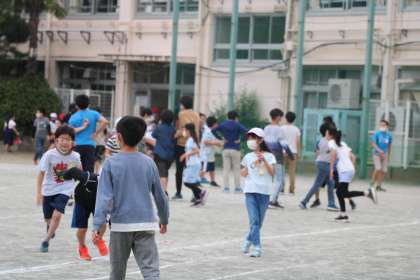 しかし、放送が入る前から、「降ってきたね」「遊べないね」と言いながら引きあげる砧の子はすごいです。大人にとっては当たり前のことですが、自分で判断して行動することは子どもには、特に集団で遊んでいるときはできないものです。