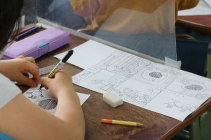 2年生図工「つづきの絵」の様子です。集中して作品に取り組んでいます。楽しい作品がたくさんあります!