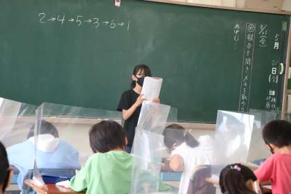 5年生国語の学習の様子です。友達の前でスピーチをすることは緊張します。でも聞いている友達や先生が終わった後、温かい拍手をくれるのでホッとします。