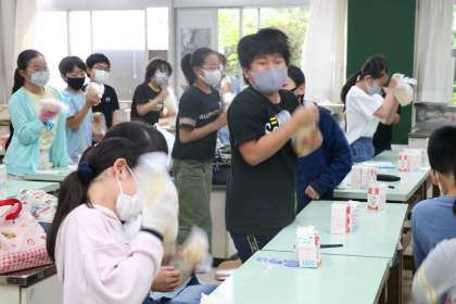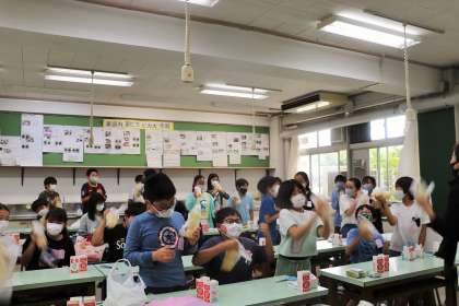 楽しそうに取り組んでいます。さあ、石鹸は完成するでしょうか?!