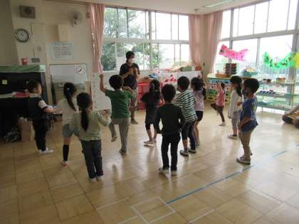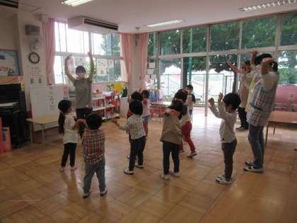 今週は雨の多い一週間でした。そんな週は、みんなで一緒に体を動かして遊ぶ活動を取り入れています。