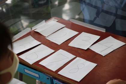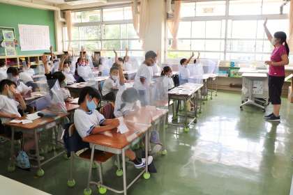 1年生の様子です。学校探検の計画をみんなで一緒に考えたり、算数「いくつといくつ」をやったり、沢山発言し、友達の意見も聞き、勉強しています。