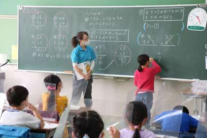 2年生の算数の様子です。自分の考え方を友達に聞いてもらうということはとても大切な学習です。自分の考えと同じ、違う、そこからまたたくさんのことを考えます。