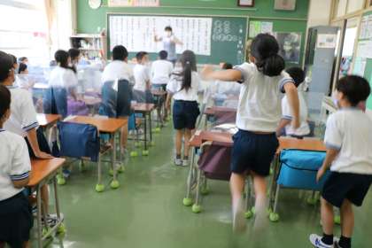 1年生音楽の様子です。「しろくまのジェンカ」の歌に、おどりをつけながら楽しんでいます。