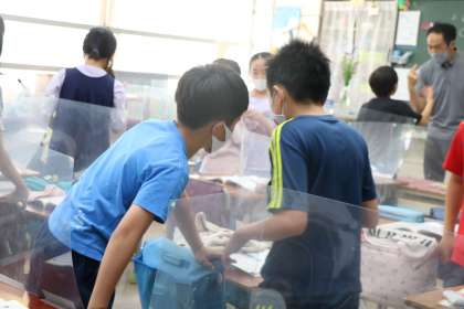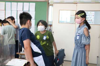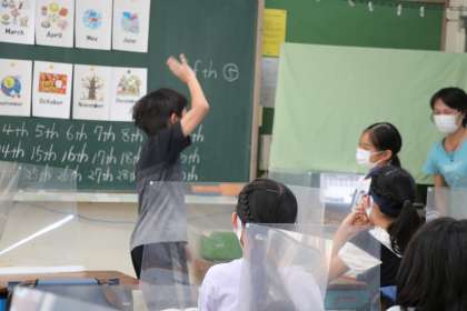 5年生外国語の様子です。「は〜い」から始まり、誕生日を聞きます。日付の早い順にクラス全員で1列を作ろうという学習です。きれいな発音で、友達に話しかけます。