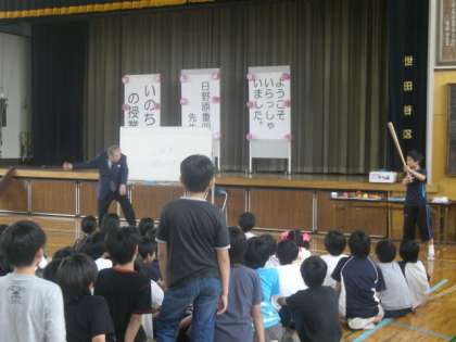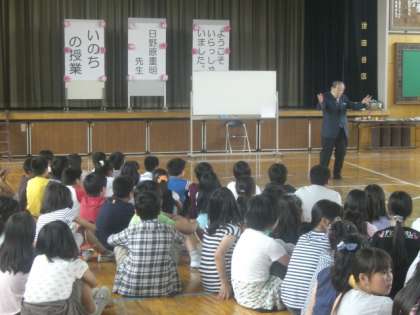 聖路加国際病院名誉院長・理事長の日野原重明先生が、砧小学校に来てくださり、4・5・6年生に体育館で、「命の授業」を行ってくださいました。