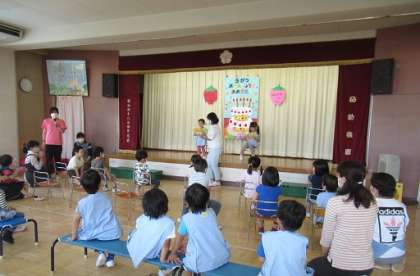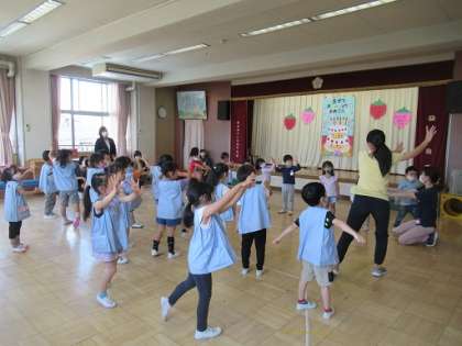 5月生まれの皆さんの誕生会をしました。お楽しみは“みんなで踊ろう”でした。